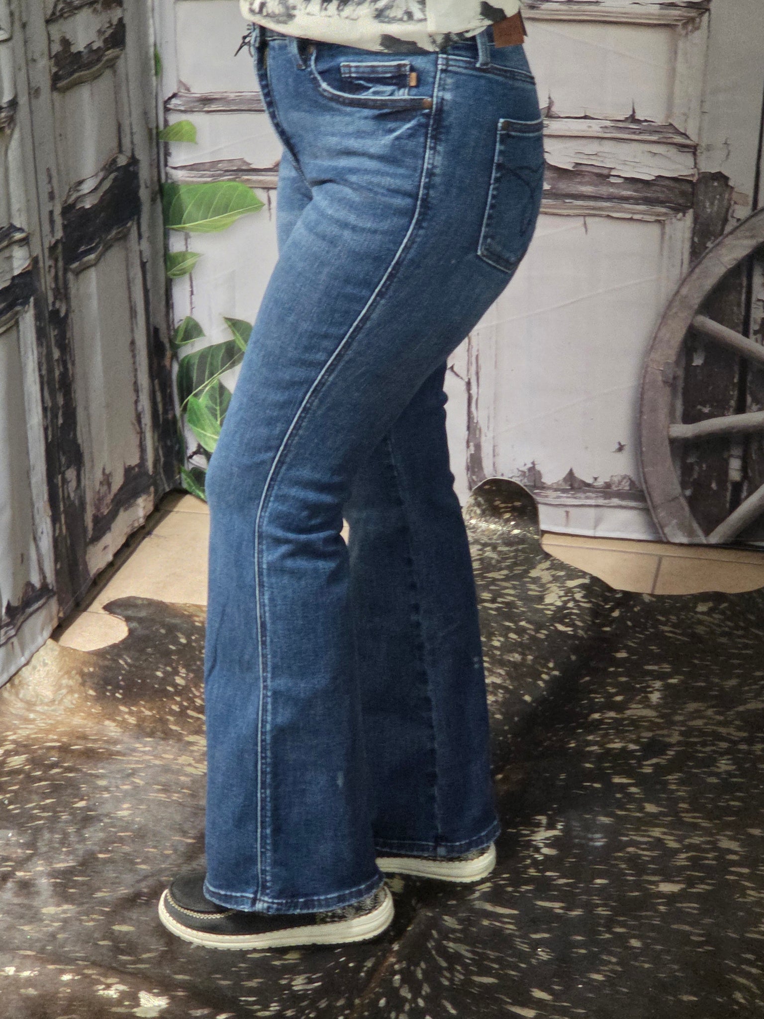 Meet your new favorite denim! These Judy Blue high-waist boot cuts feature a supportive tummy control panel that smooths and shapes while you move through your day. The ultra-stretchy fabric hugs you in all the right ways—comfortable enough for casual hangouts, polished enough for nights out. That classic boot-cut length flatters every frame, and the quality construction means these beauties will be a wardrobe staple for years to come. Confidence never looked so good!