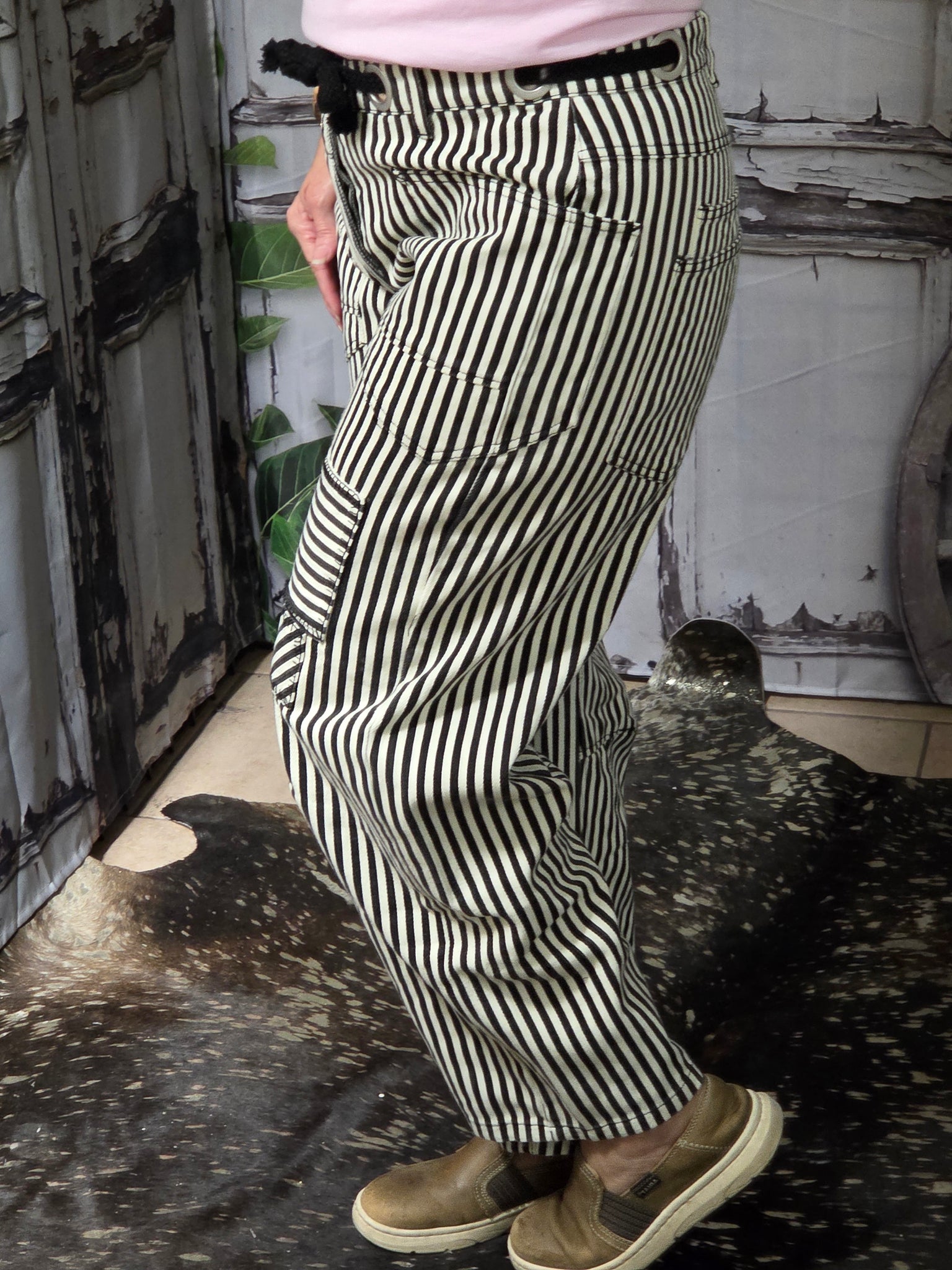 These adorable striped twill barrel jeans bring vintage charm with modern flair. The cute stripe pattern adds personality to your everyday look, while the relaxed barrel fit offers that effortless, laid-back vibe. Crafted from sturdy twill fabric with no stretch, these jeans hold their shape and deliver authentic denim durability. Perfect for pairing with your favorite tees, crop tops, or oversized sweaters. A playful wardrobe essential that's equal parts fun and timeless.