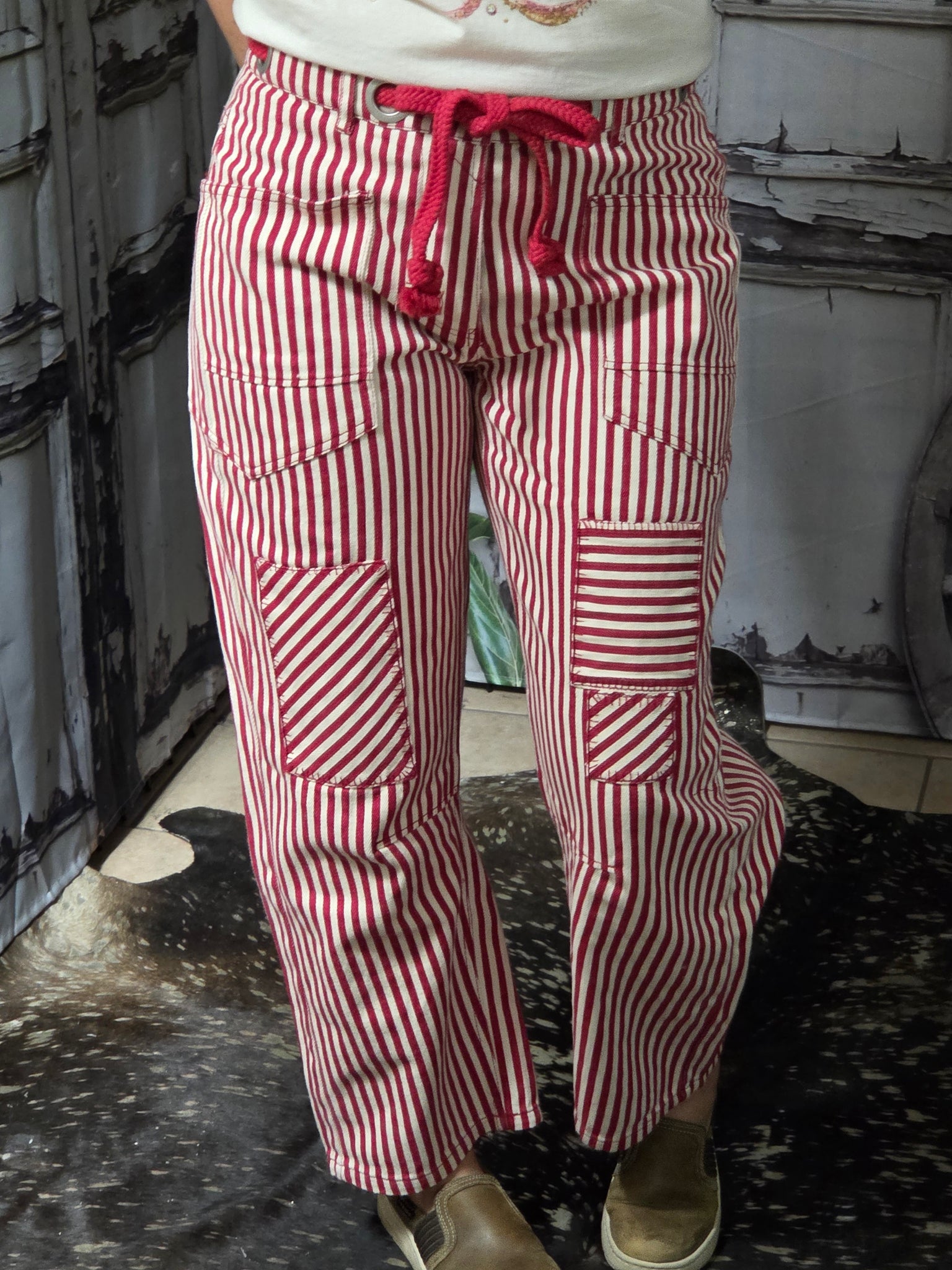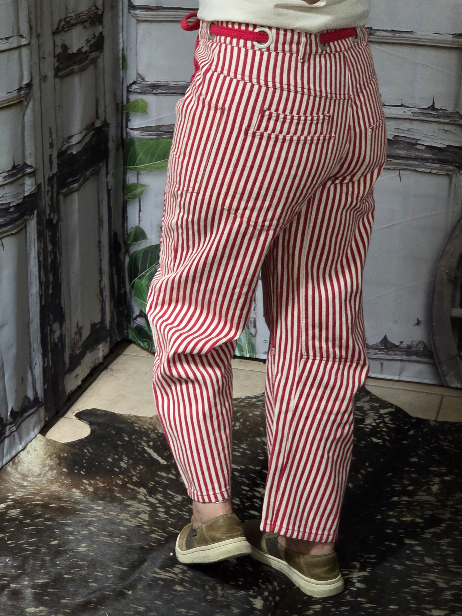 These adorable striped twill barrel jeans bring vintage charm with modern flair. The cute stripe pattern adds personality to your everyday look, while the relaxed barrel fit offers that effortless, laid-back vibe. Crafted from sturdy twill fabric with no stretch, these jeans hold their shape and deliver authentic denim durability. Perfect for pairing with your favorite tees, crop tops, or oversized sweaters. A playful wardrobe essential that's equal parts fun and timeless.