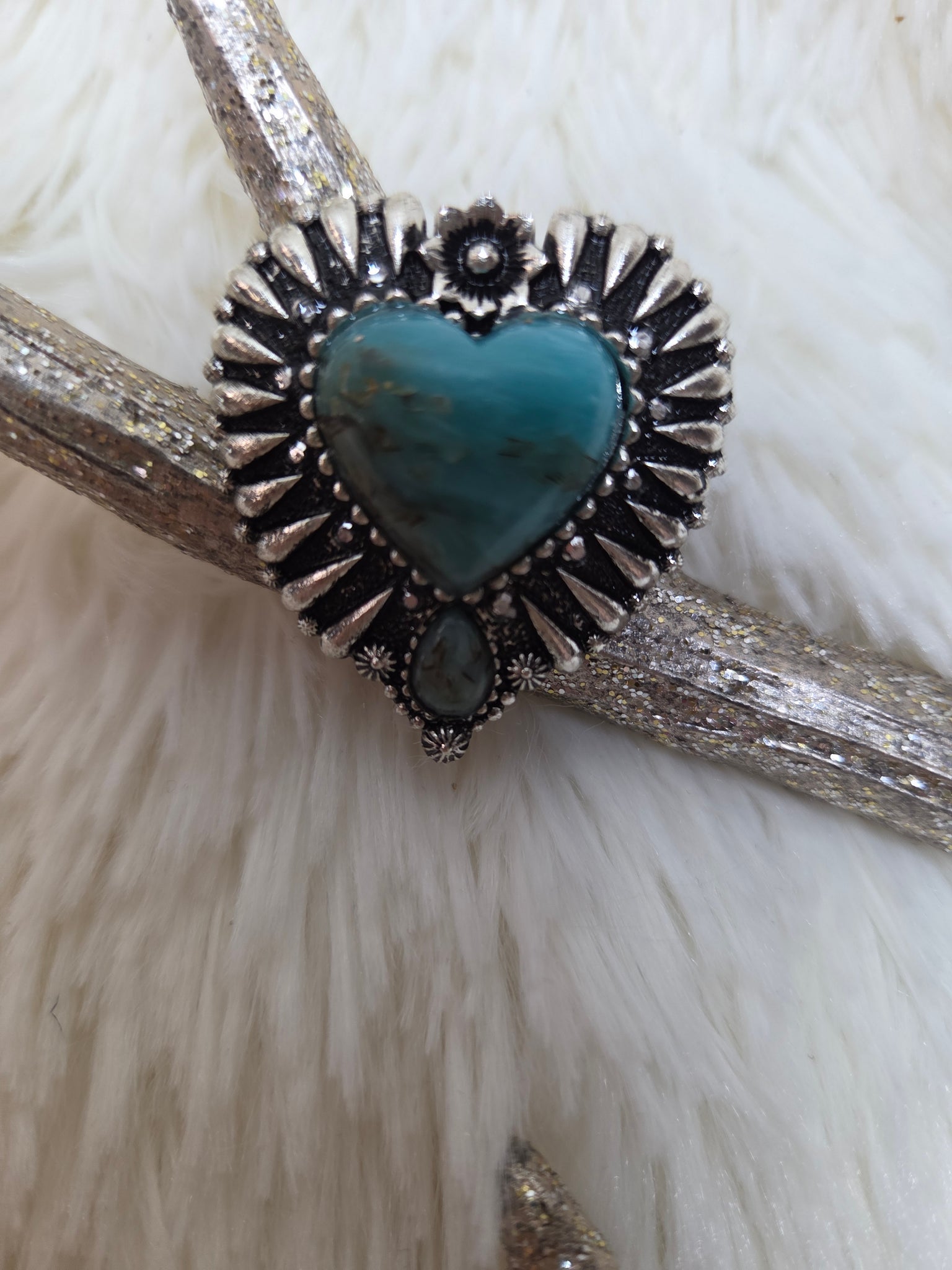 Slip on this charming Western Heart Hand Stone Stretch Ring and let it mold to your perfect fit! The flexible band adjusts effortlessly to any finger size, making it the ultimate one-size-fits-all accessory. Featuring a beautiful hand-stone heart detail with authentic Western flair, this ring brings a touch of cowgirl sass to your everyday style. No sizing stress, just instant comfort and timeless appeal!
