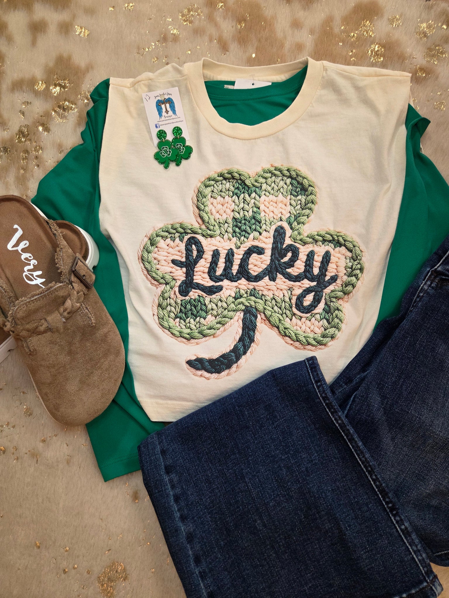 Rock a versatile look with this sleeveless graphic tee featuring a bold clover design. Wear it solo for a casual vibe or layer it under a mesh or solid long-sleeved top for added dimension and style. Perfect for mixing and matching with your existing wardrobe to create endless outfit combinations. This tee is sleeveless